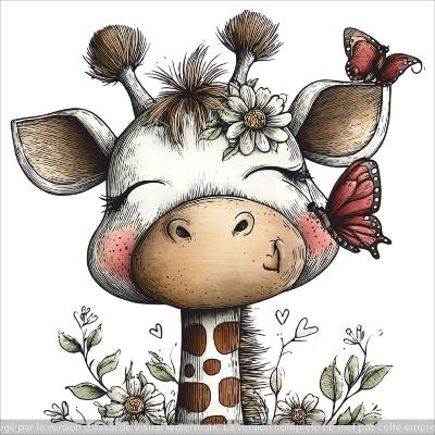 panneau simili : modèle 2281-ANIMAL GIRAFE AUX PAPILLON
