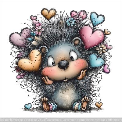 panneau simili : modèle 2272-ANIMAL-HERISSON AVEC COEURS