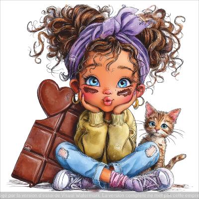 panneau simili : modèle 2279- FEMME-FILLETTE-CHOCOLAT ET CHAT