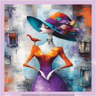 panneau simili : modèle 2294-FEMME-CHAPEAU EN FLEUR