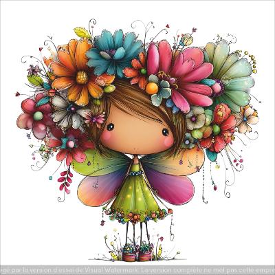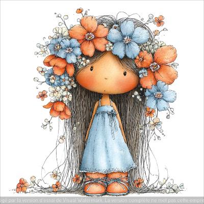 panneau simili : modèle 2270-FEMME-FILLETTE AVEC COURONNE DE FLEUR
