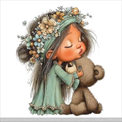panneau simili : modèle 2274- FEMME-FILLETTE AVEC OURSON