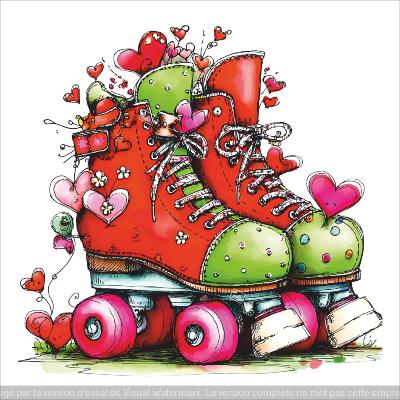panneau simili : modèle 2275- FEMME-PATIN A ROULETTE RETRO