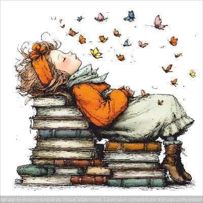 panneau simili : modèle 2268-LECTURE-FILLETTE COUCHE SUR LES LIVRES